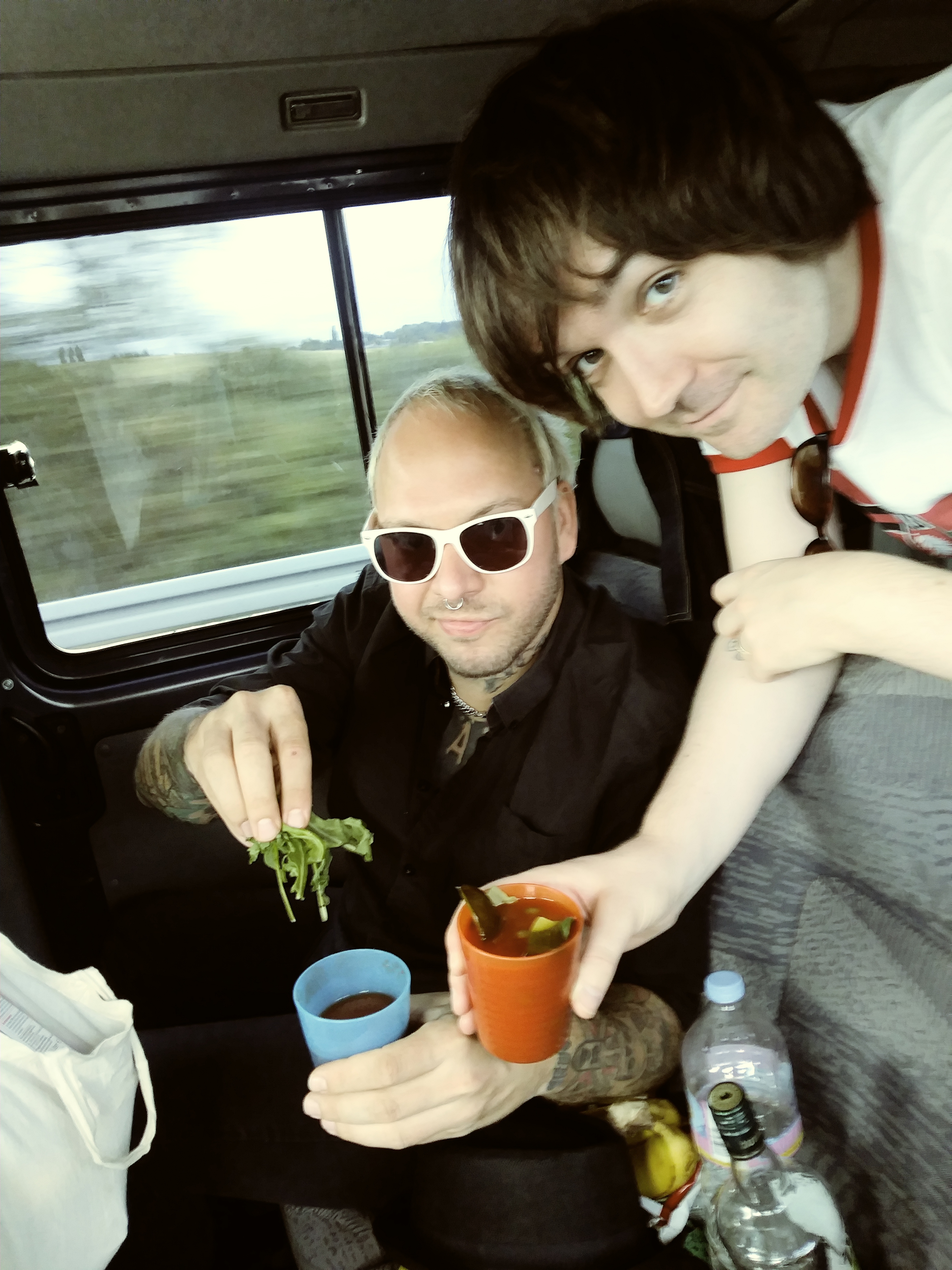 Under direct orders from our minister of nutrition, Udo, we drank some bespoke bloody mary’s in the van bar. Wodka, pickles, olives, and arugula with