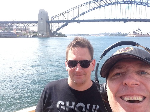British Airways lost Sulli’s bag and he had to borrow Justin’s clothes for the first few days. Here’s Justin and Sulli in Fat White Family t-shirts pre-schlaff.