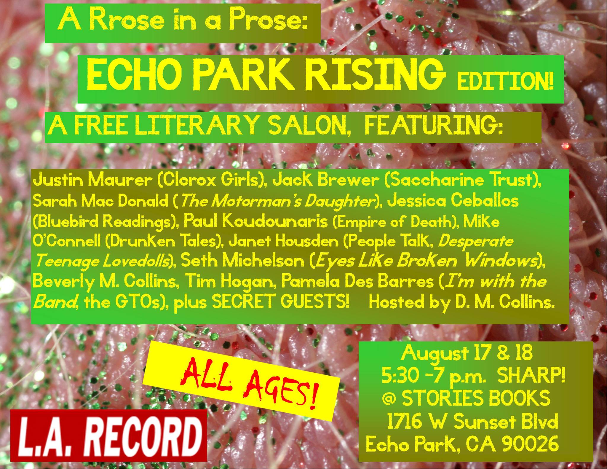 Writers hanging out after our reading at Rrose Is A Prose, Echo Park Rising Festival, Los Angeles (with Seth Michelson, Dan Collins, Janet Housden and more)